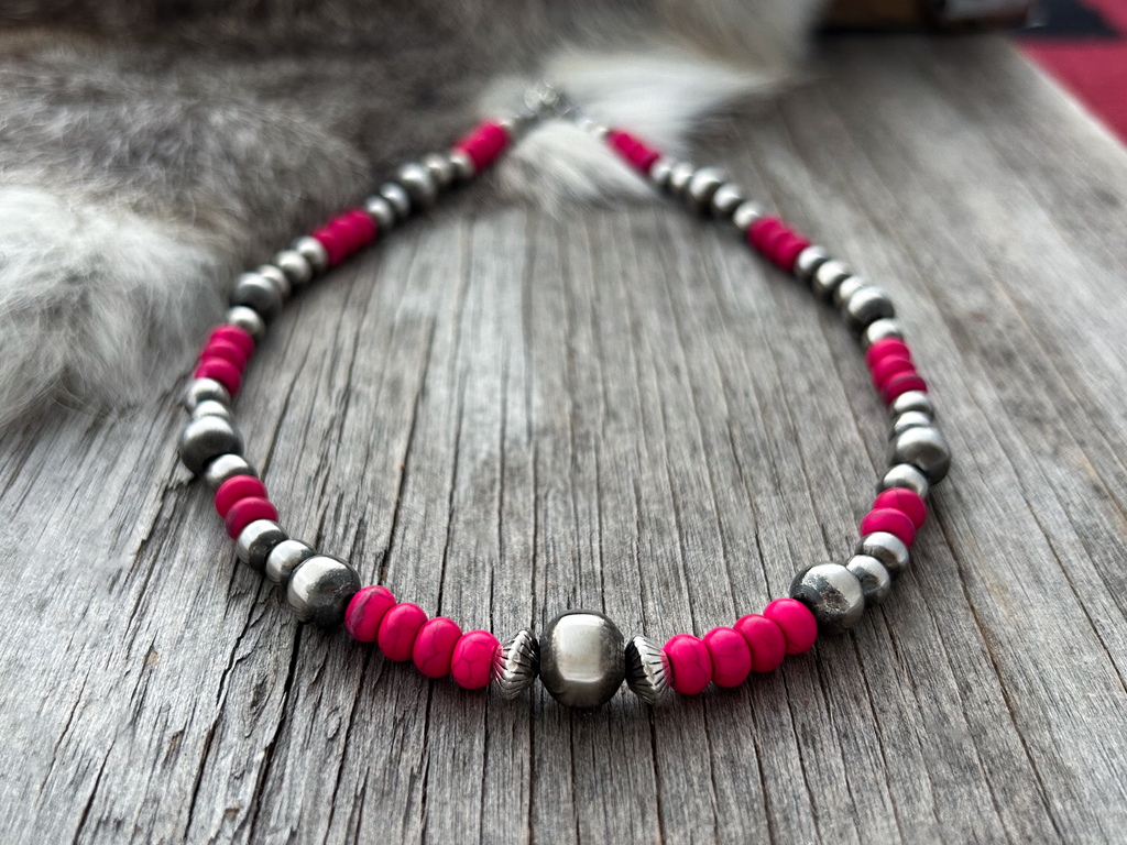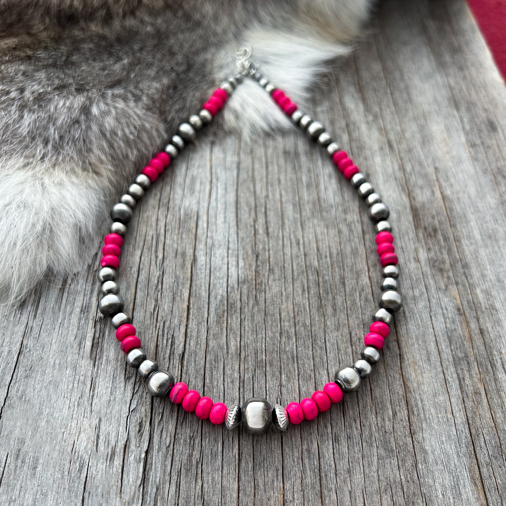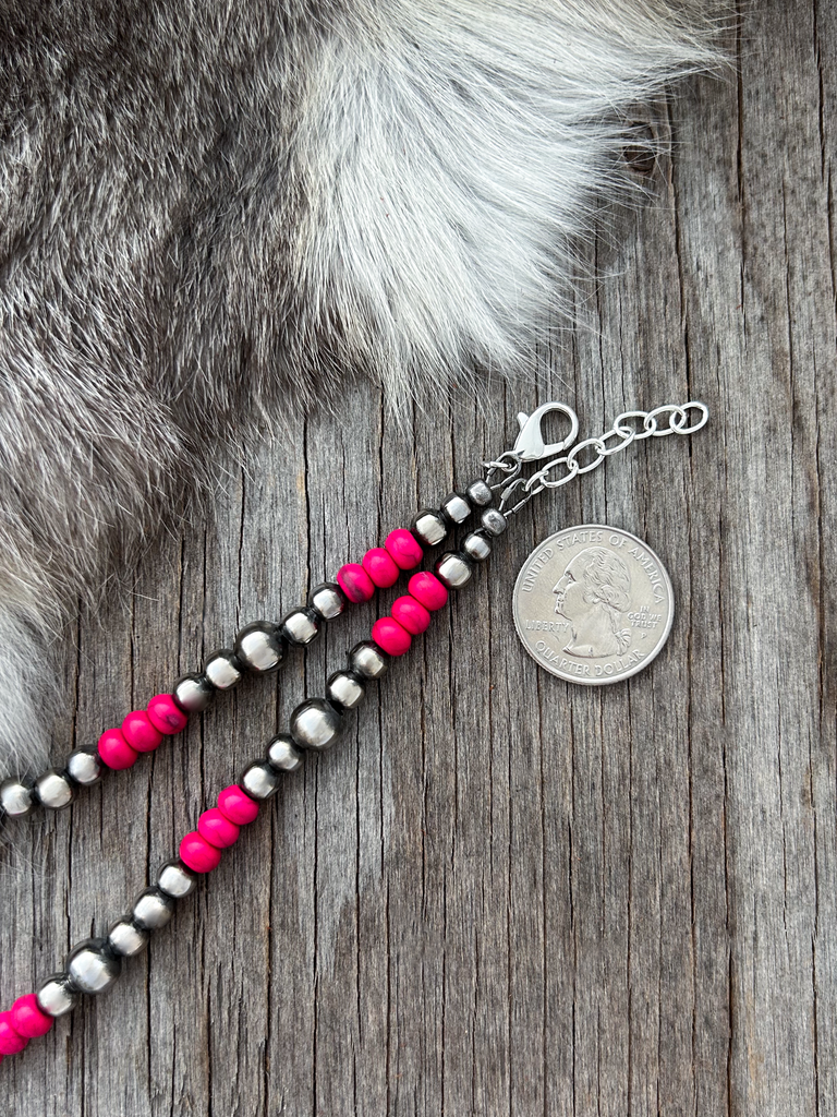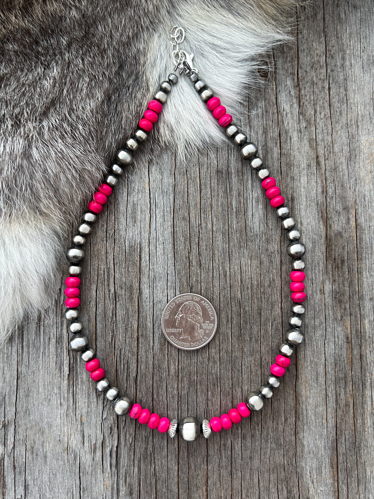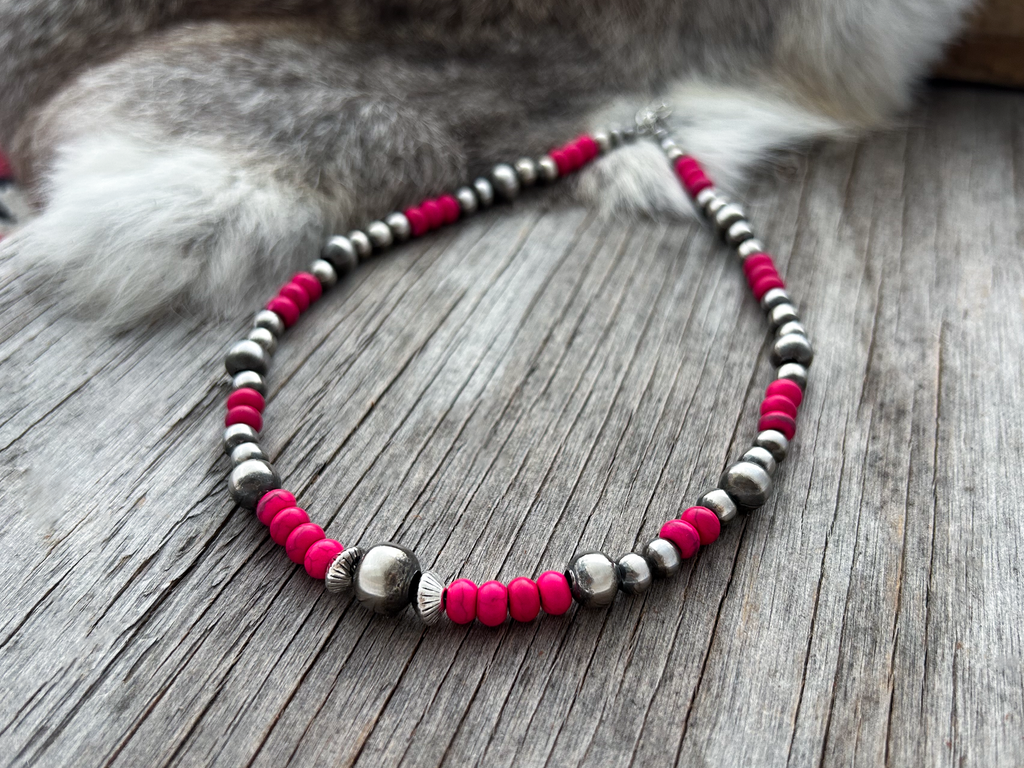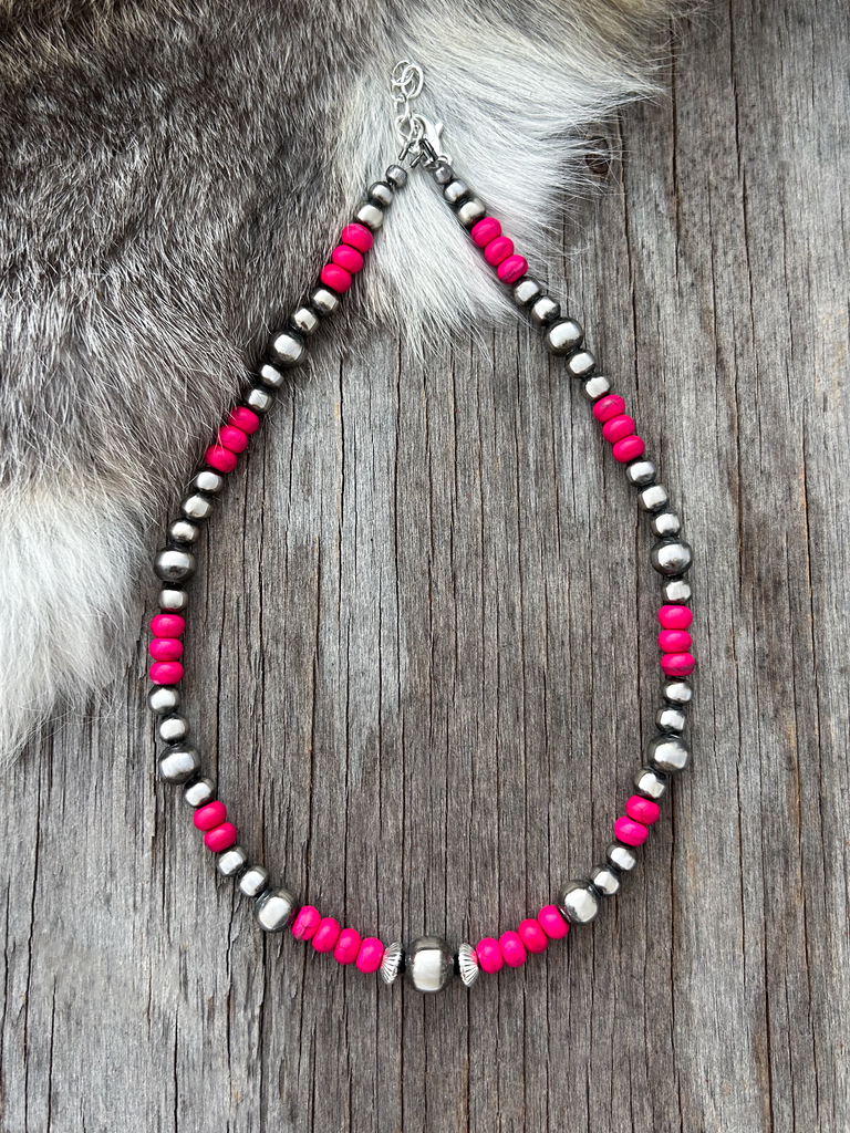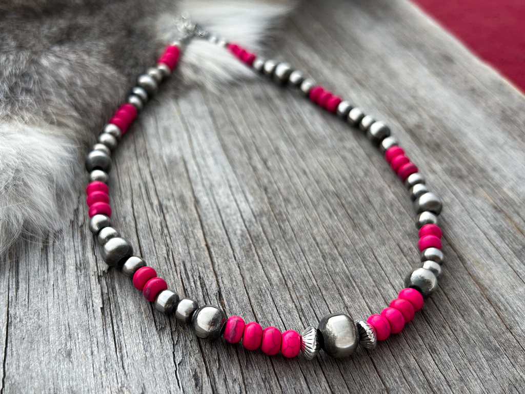 Gorgeous Navajo Pearl Necklace with German Silver and Pink beads. Navajo Pearls are 5, 6, 8 and 10mm.