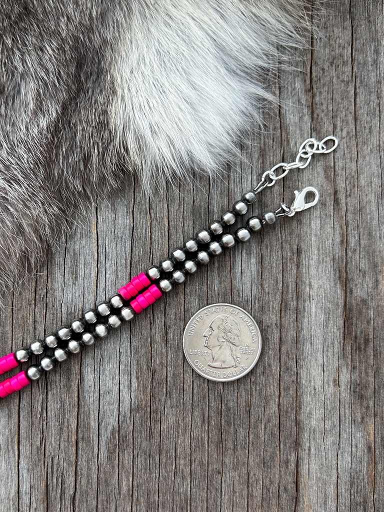 Navajo Pearl Handmade Necklace ~ Pretty n Pink ~ 5mm German Silver Beads!
