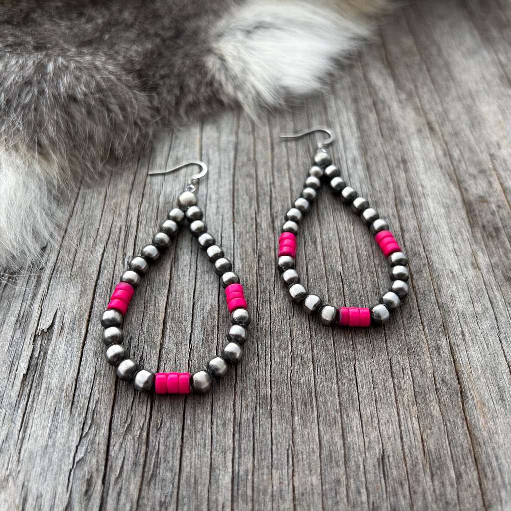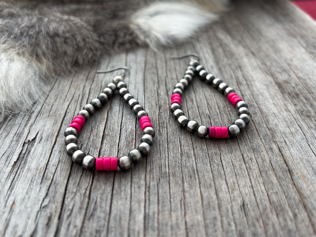 These beautiful Navajo Pearl teardrop earrings are made from 5mm beads.