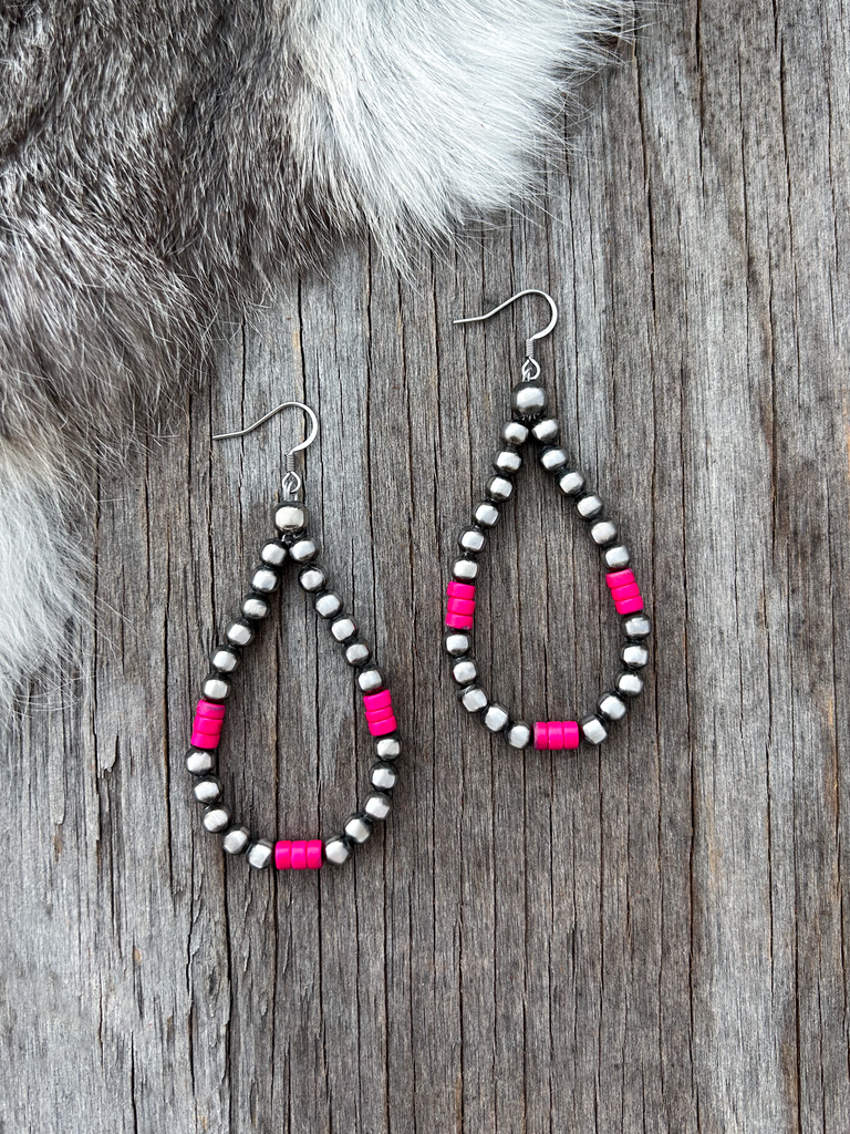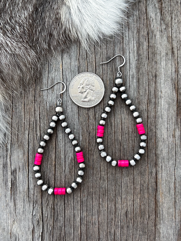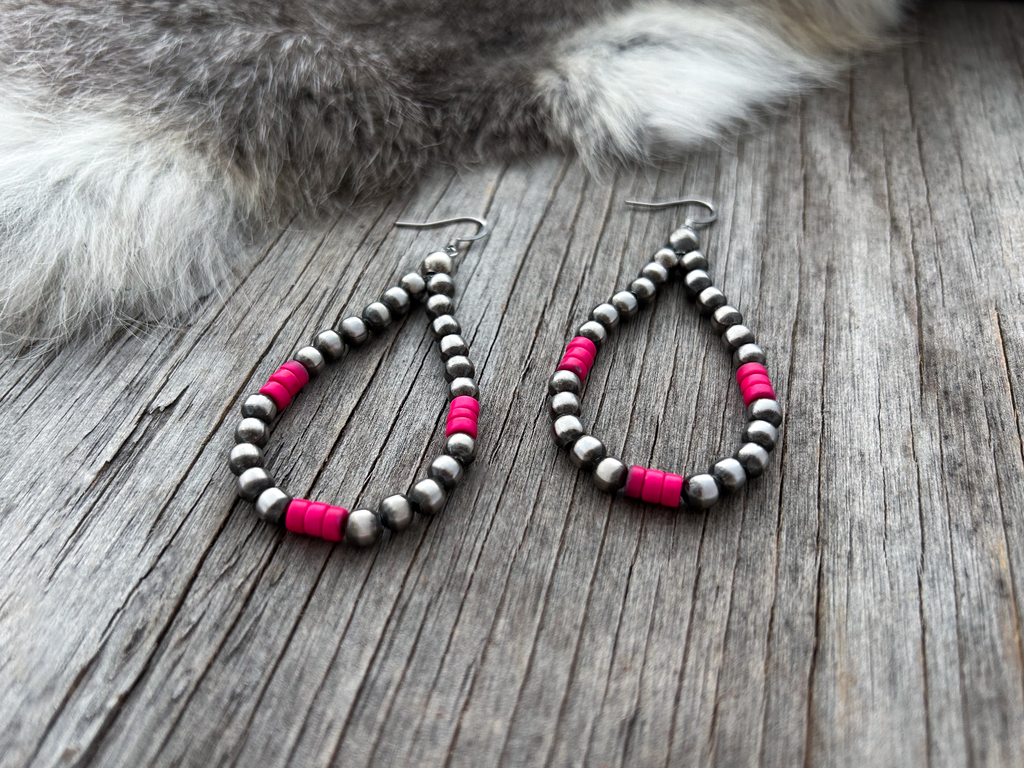 Navajo Pearl Handmade Petite n Pink Teardrop Earrings ~ German Silver beads!