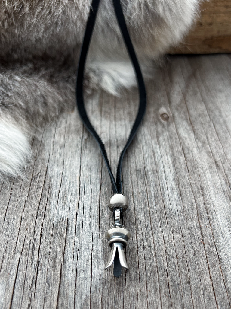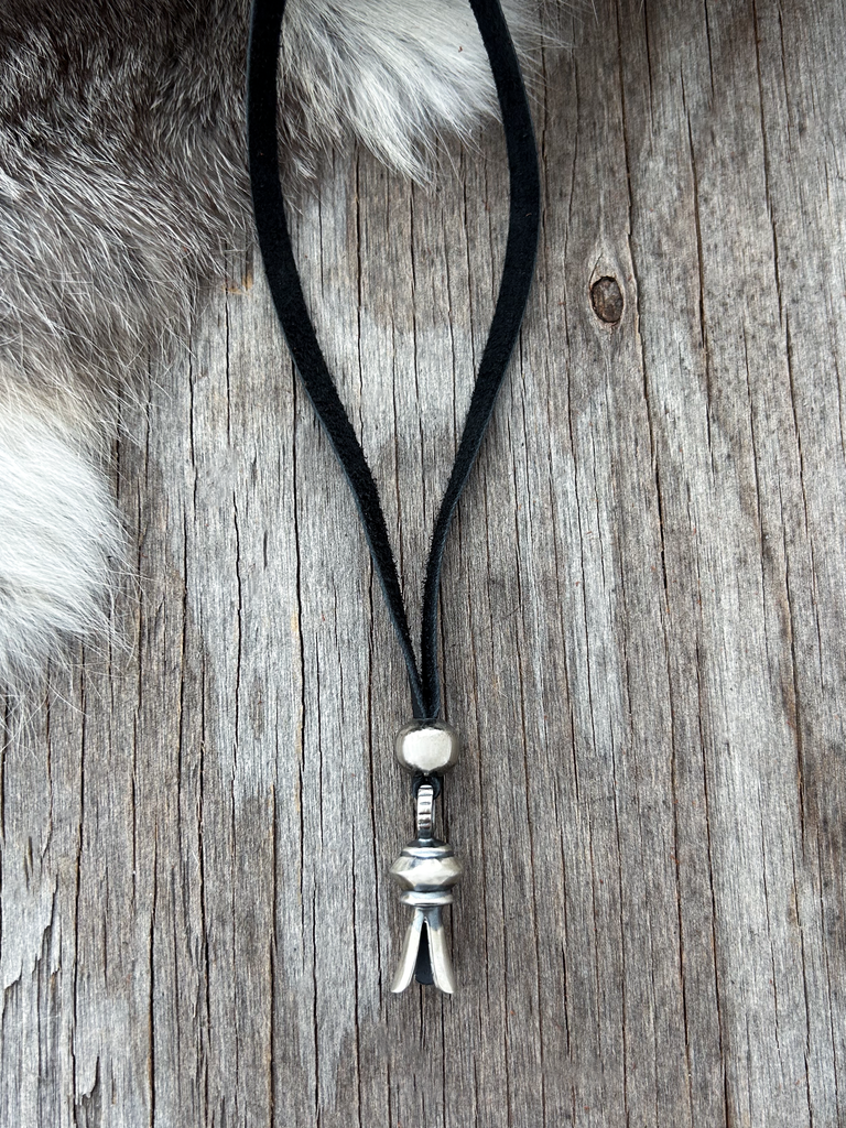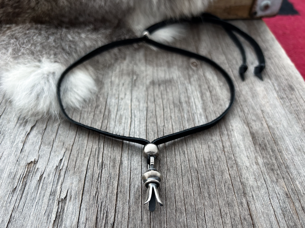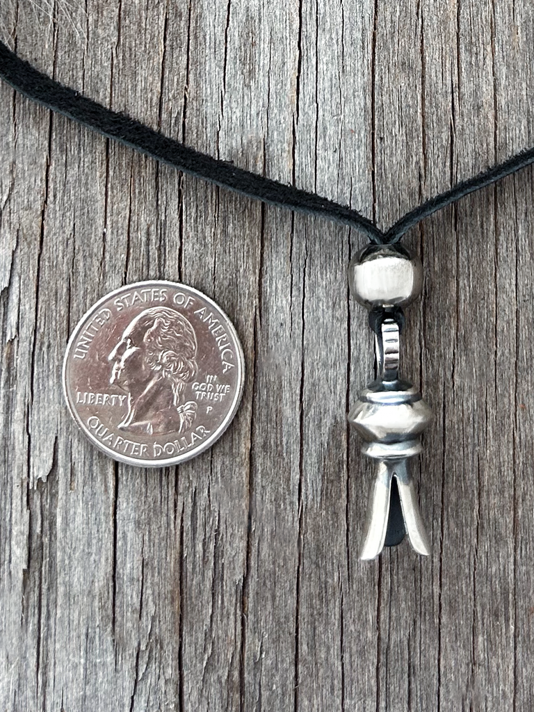 [if IE 9 ]> Squash Blossom Pendant Cast in Sterling On Soft Black Leather ~ Adjust – Native Silver Trading