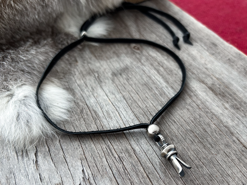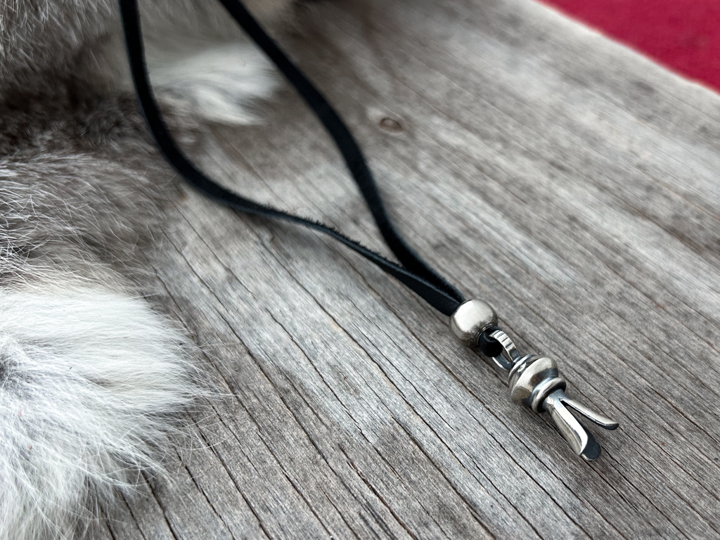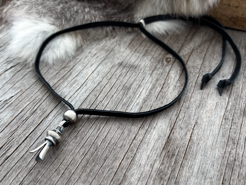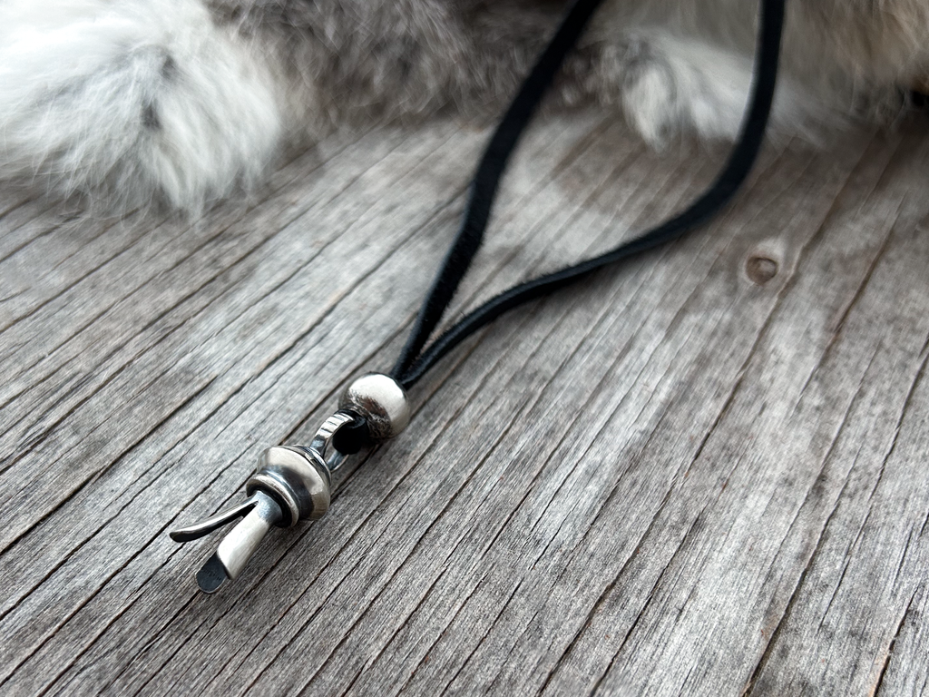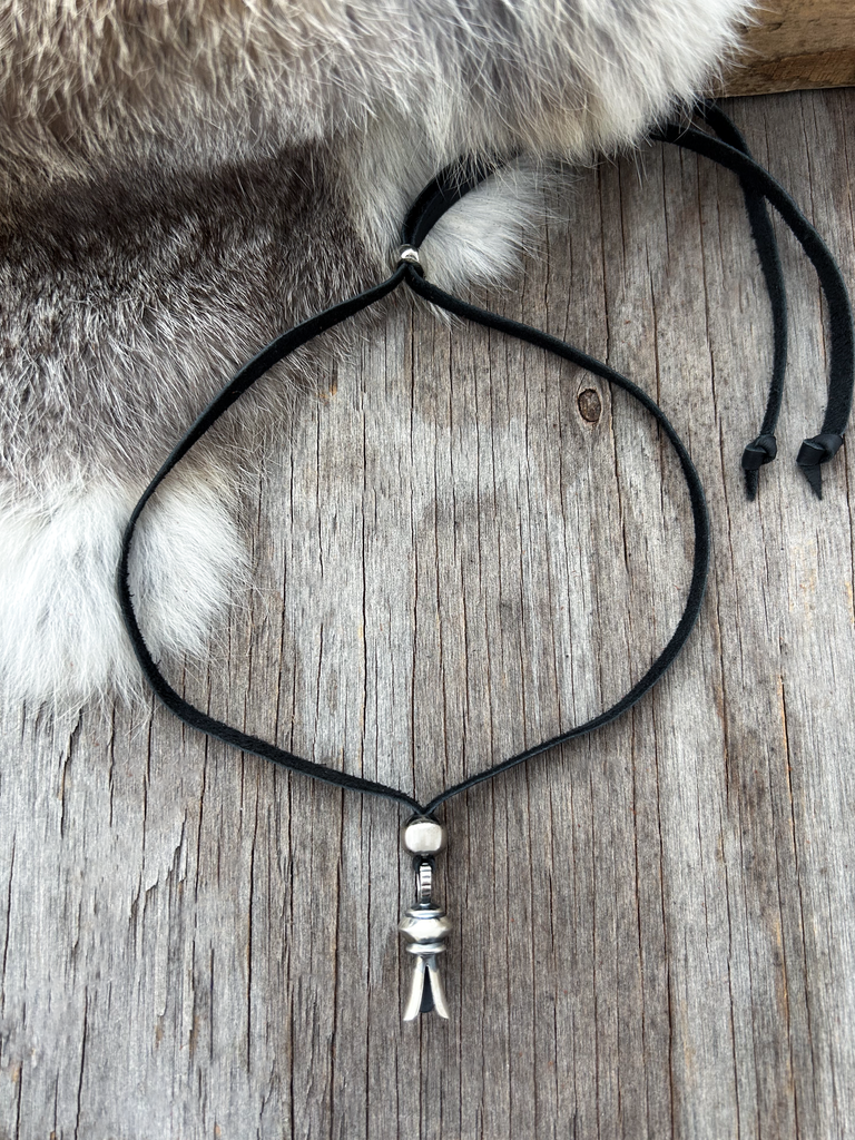 [if IE 9 ]> Squash Blossom Pendant Cast in Sterling On Soft Black Leather ~ Adjust – Native Silver Trading