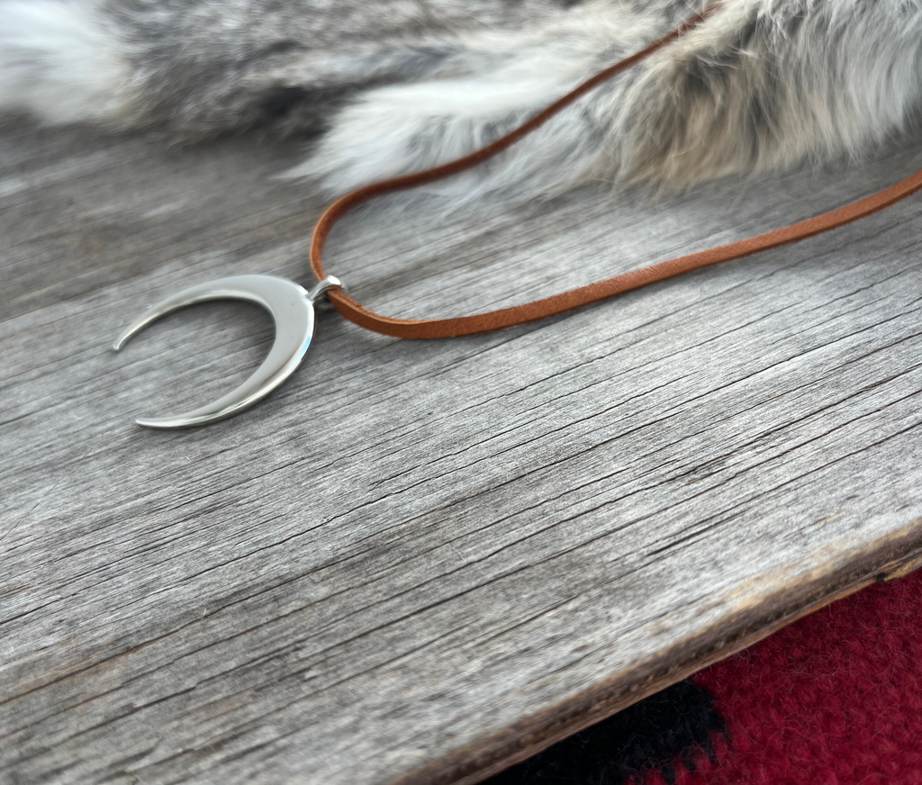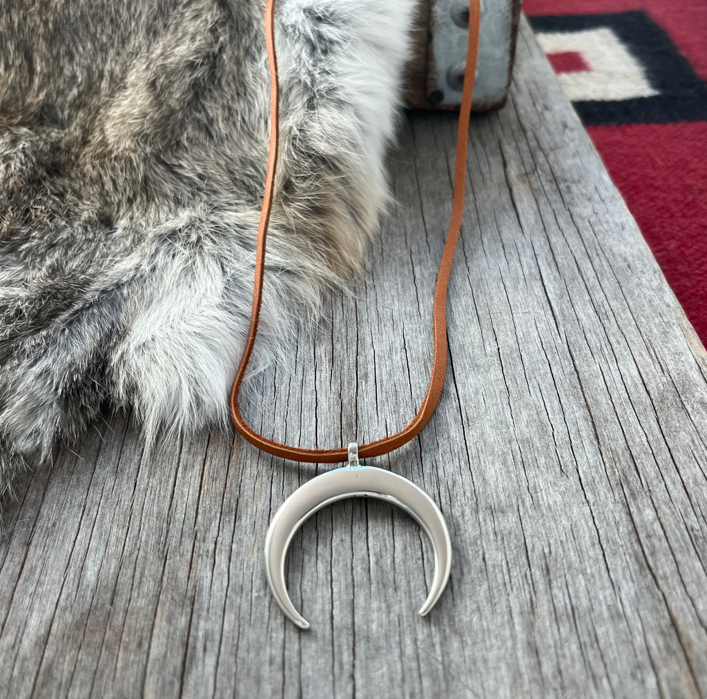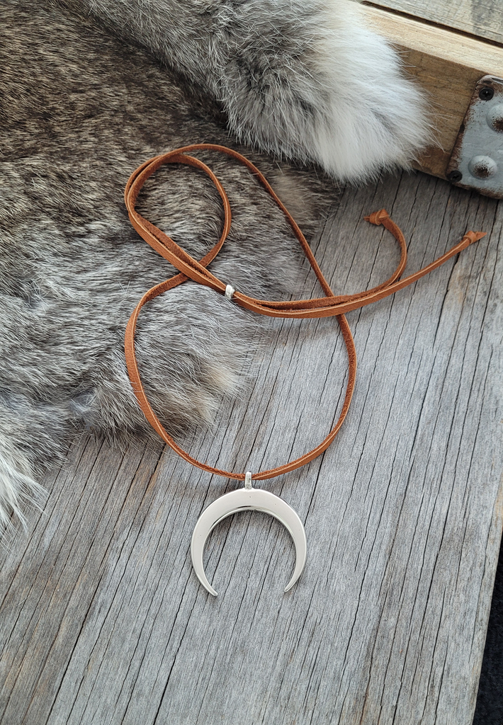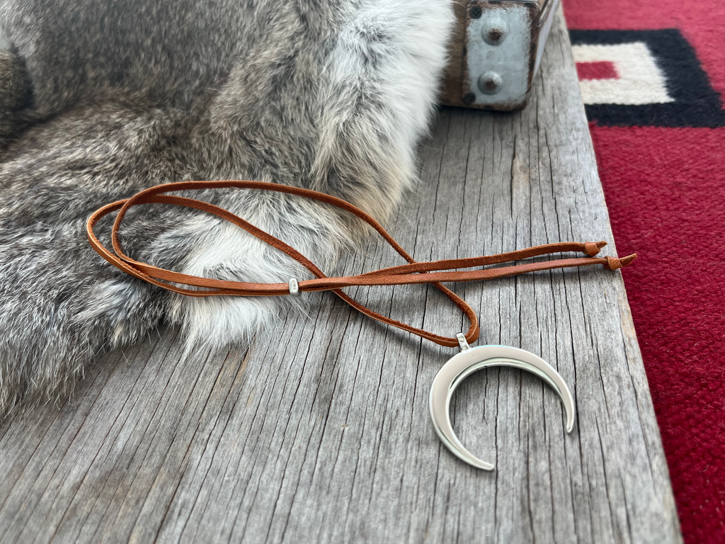 Stunning Large Crescent Pendant Necklace on Brown Leather ~ Slider Style!
