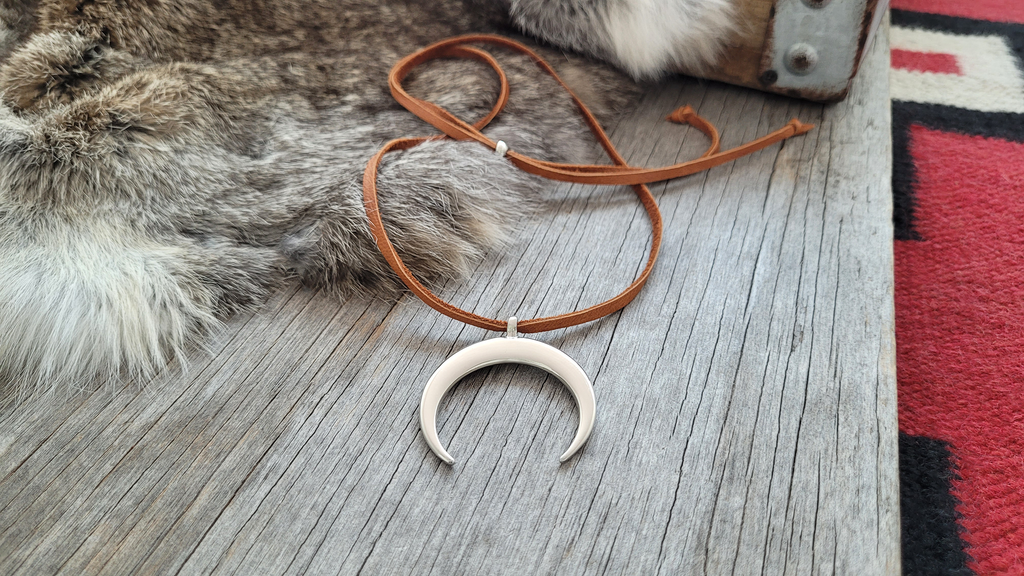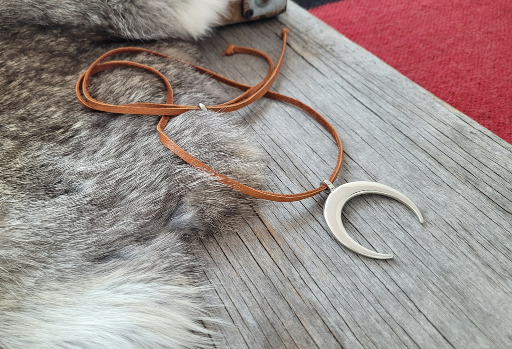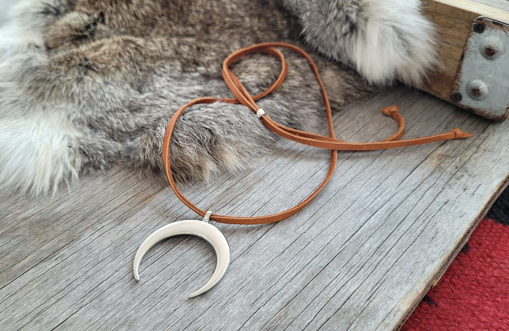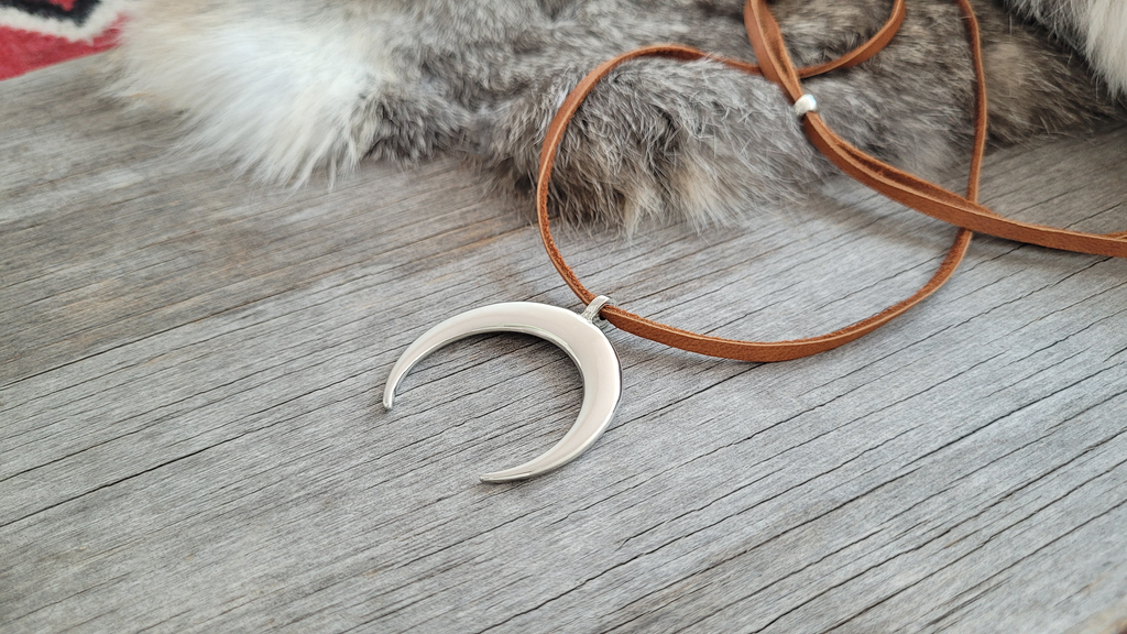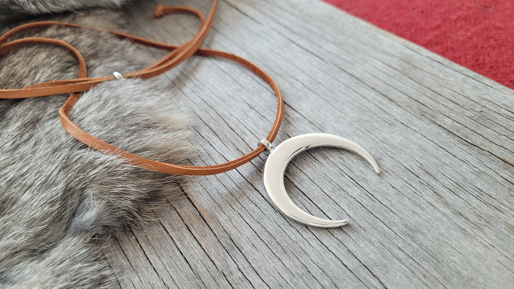 Stunning Large Crescent Pendant Necklace on Brown Leather ~ Slider Style!