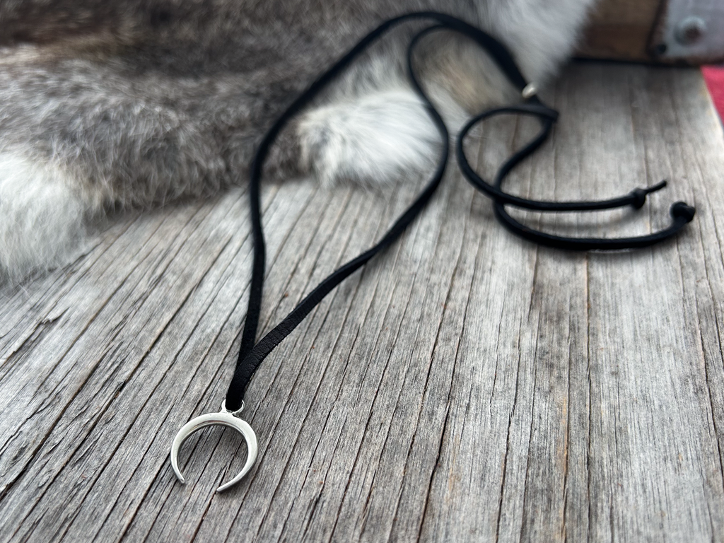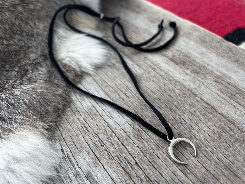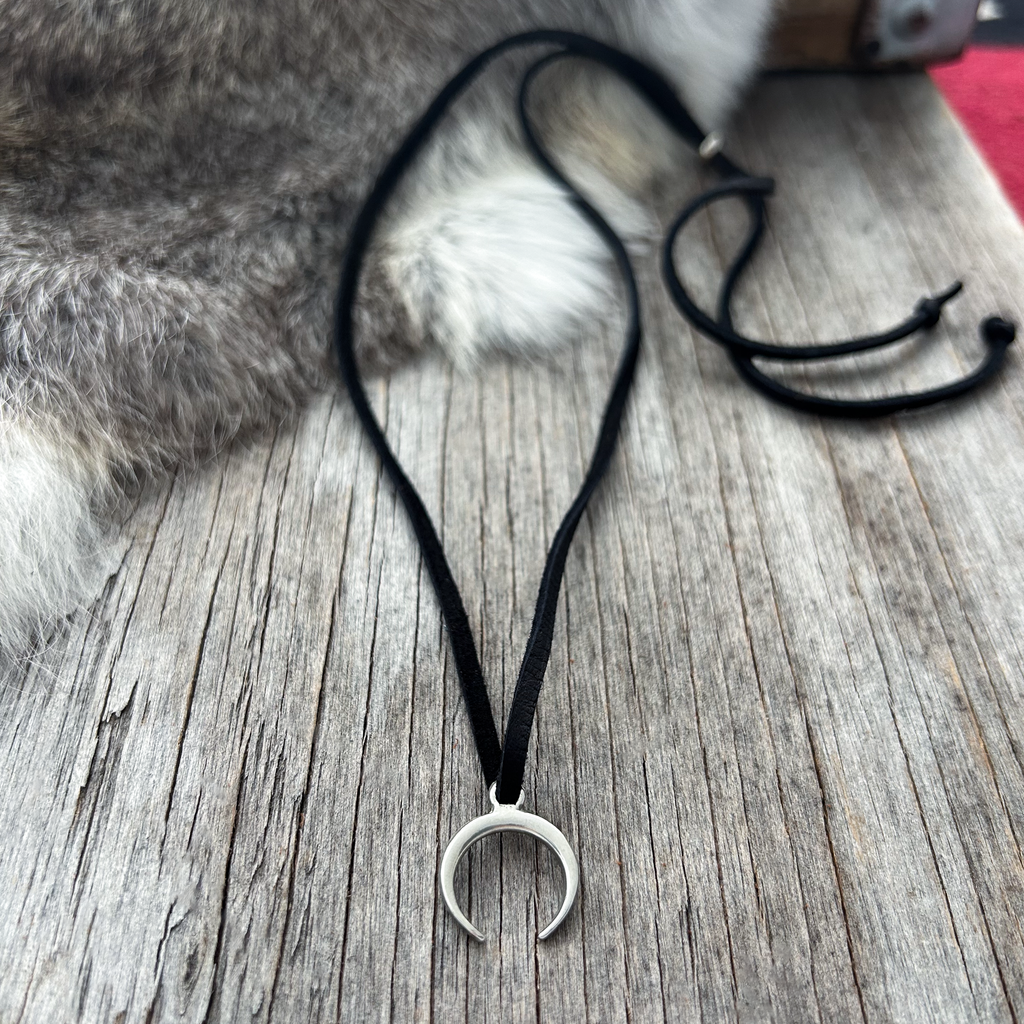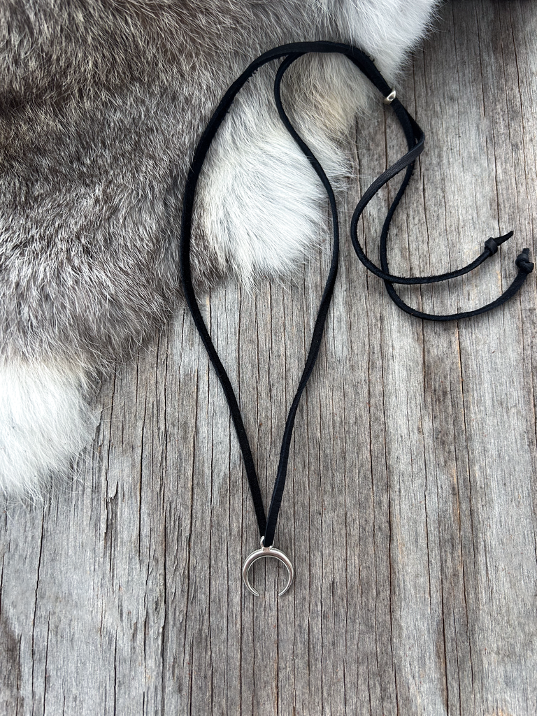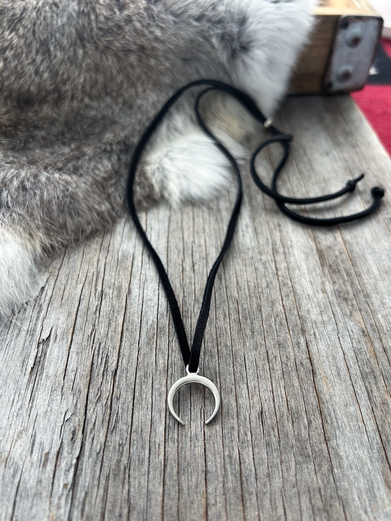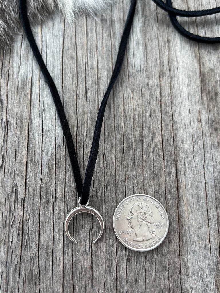 Stunning Small Crescent Pendant Necklace on Black Leather ~ Slider Style!